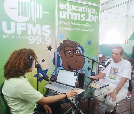 Antes da Roda de Conversa ao lado do escritor Jaminho, que se apresenta como um “bugre descorado”, mas capaz de dissecar a cultura regional e todas as suas dimensões através de mais de uma dezena de publicações, Bosco Martins falou à Rádio FM 99,9, no estande da UFMS a respeito do lançamento da edição impressa de Diálogos do Ócio pela Editora da Universidade, reforçando que a obra, que mais do que nunca poderá ter uma segunda edição atualizada e revisada em razão do “achados” inéditos, seguindo o propósito de homenagear e compreender a poesia de Manoel de Barros.
