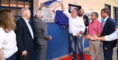 Logo após o ato de outorga do Título de Cidadão Pontaporanense ao Desembargador Sérgio Fernandes Martins, foi feito o corte de faixa e a descoberta da placa comemorativa de entrega da biblioteca ‘Reassilva Martins’, matriarca da família Martins e esposa de Manoel Martins, que leva o nome do educandário, a maior escola da rede municipal de ensino de Ponta Porã.