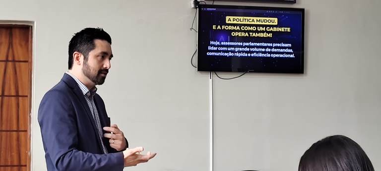O palestrante Carlos Kayoda destacou que a inteligência artificial “é hoje uma das ferramentas mais poderosas da atualidade, capaz de acelerar e otimizar o trabalho legislativo”. Segundo ele, a tecnologia veio para auxiliar os profissionais da comunicação e transformar a forma como o serviço público se comunica com o cidadão.