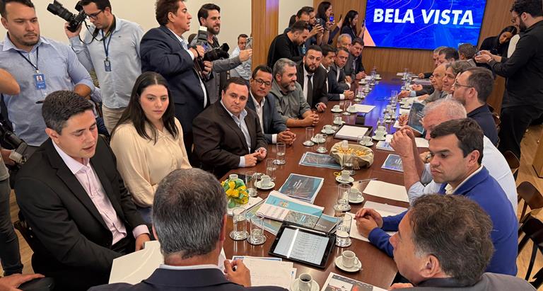 Durante a reunião, que teve como foco a busca por investimentos e melhorias para Bela Vista, o governador Riedel confirmou o compromisso de destinar cerca de R$ 14 milhões para obras de drenagem e pavimentação asfáltica da Rua Afonso Pena e toda a sua extensão, uma das vias mais importantes da cidade.