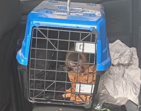Em uma caminhonete, pronta para transporte, foi encontrado o animal mais vulnerável: um filhote de macaco-prego, em uma caixa de transporte, apresentando sinais de desnutrição.