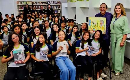 As atividades contaram com uma palestra do jornalista e escritor Bosco Martins, autor do livro “Diálogos do Ócio”, para cerca de 300 alunos do 5º ano do Colégio Oswaldo Tognini (Funlec). Os estudantes celebraram o poeta com desenhos e poesia inspirados em sua literatura. O livro de Martins é referência para estudiosos e tem testemunhado a imersão de jovens na obra de Barros, também observada em outras instituições, como a Escola Municipal Oliva Enciso. Lá, uma exposição reuniu versos, desenhos, objetos e móveis que reproduziam o ambiente do poeta, incluindo o sofá e a icônica máquina de escrever sobre sua escrivaninha.